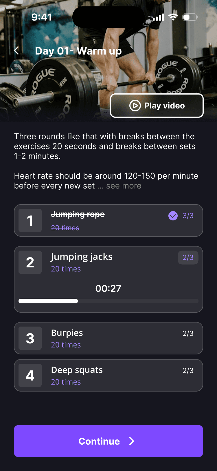 Choose between 3 difficulty presets of exercises based on your fitness level